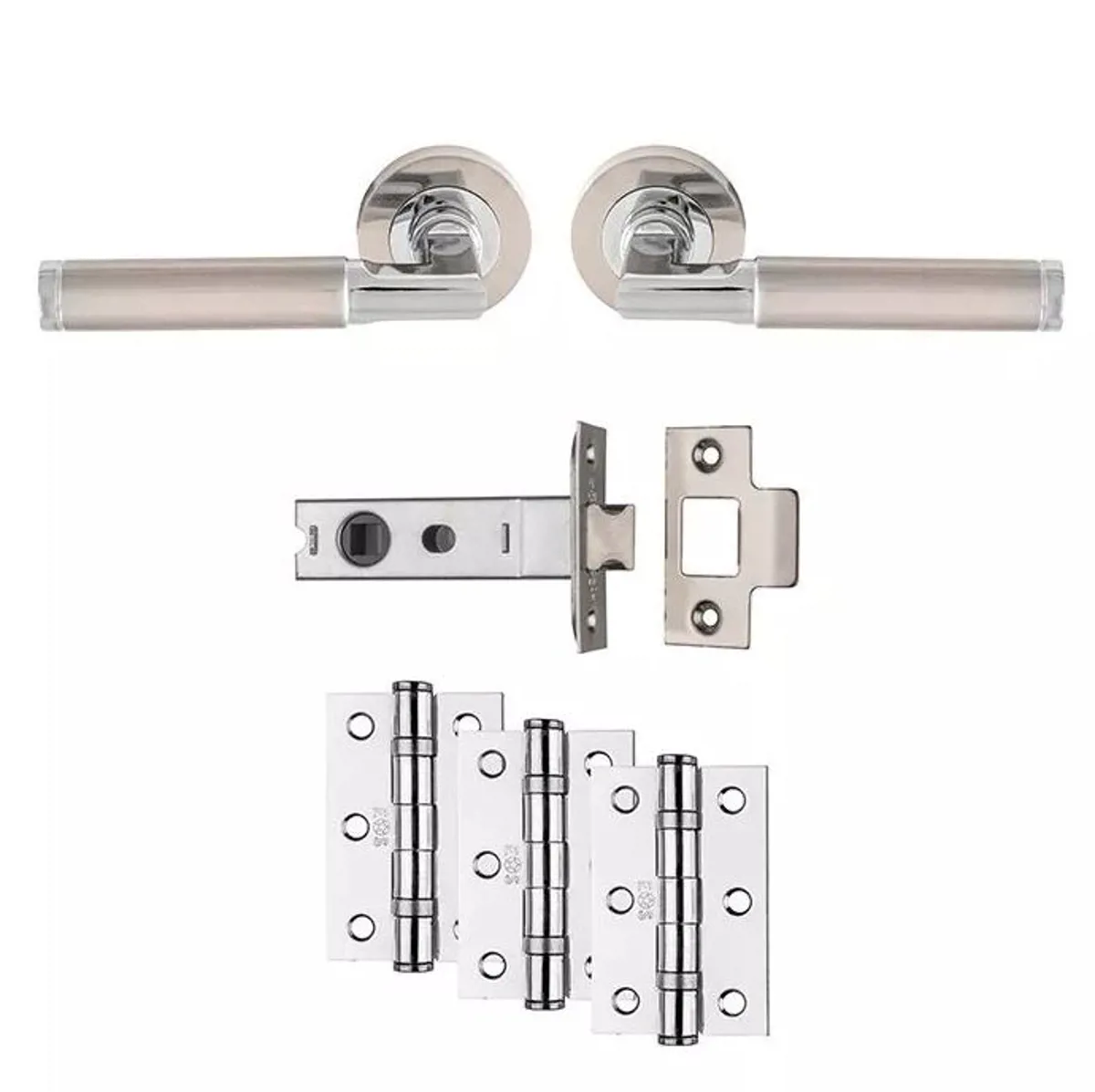 The Belas Ultimate Door Pack in Satin Nickel adds a modern touch to any interior door. Its sleek, durable design ensures long-lasting performance and style.