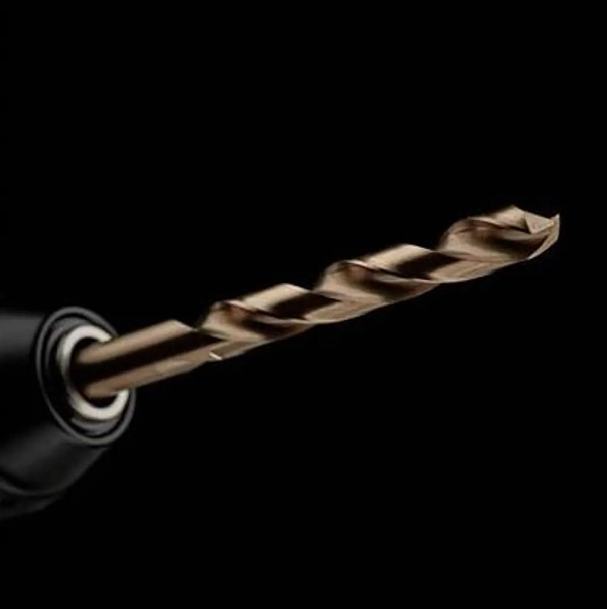 These precision engineered steel drill bits, with 5% cobalt shaft, are manufactured to DIN338 standards, with a 135 degree split point tip for drilling without pre-centering. The M35 shaft with 5% cobalt gives excellent resistance to heat and wear. Right hand cutting at 30 degrees.