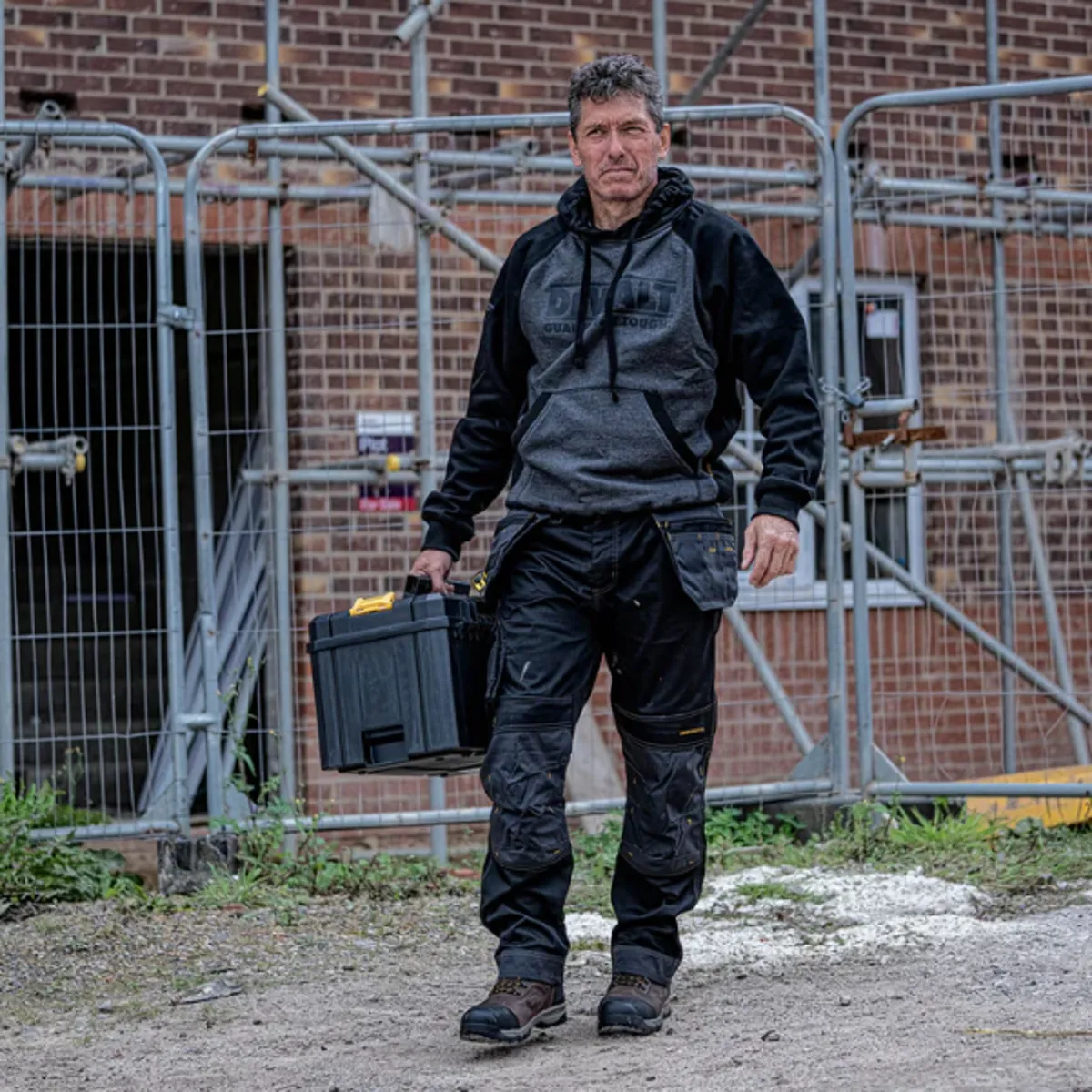 The DeWalt Stratford Poly Cotton Hooded Sweatshirt, the perfect blend of comfort and style. Crafted with luxurious polycotton, this sweatshirt boasts a practical kangaroo pocket, a drawcord hood, and elasticated cuffs and hem for a sleek and cozy fit.