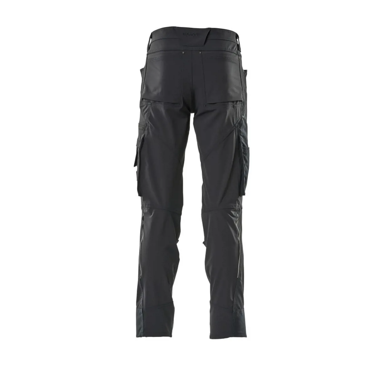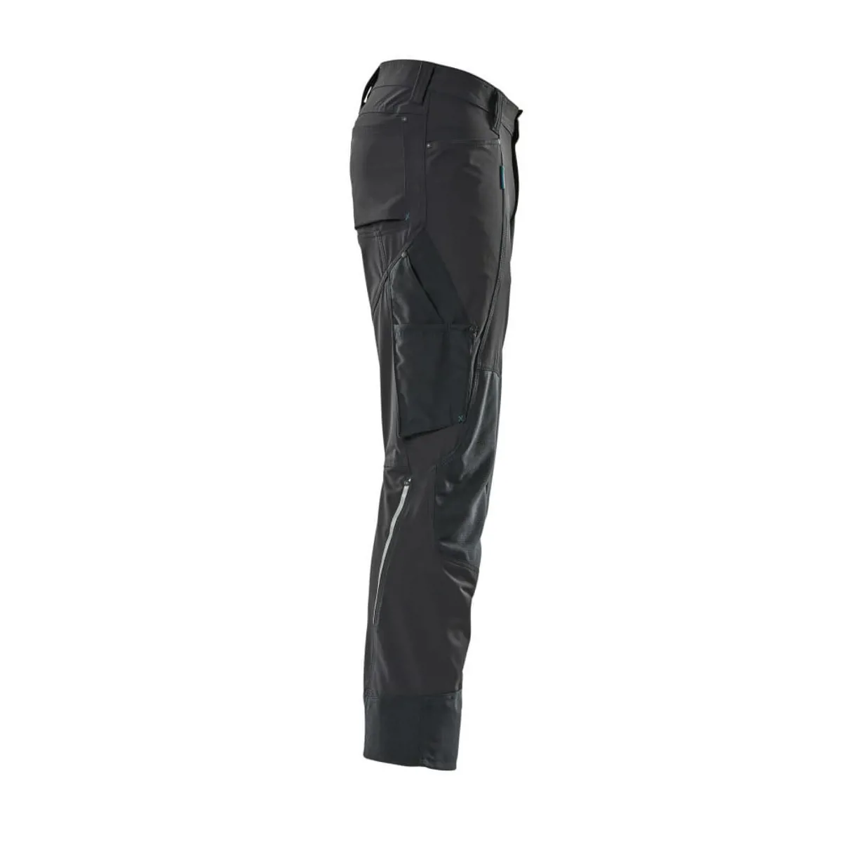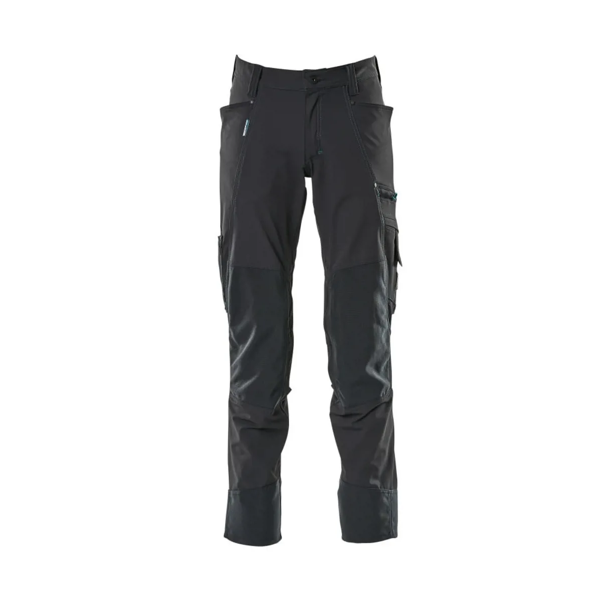 Mascot Workwear Trousers with Kneepad Pockets (in Dark Navy) a water-repellent finish. Ultimate stretch fabric that is lightweight and highly durable and provides unique freedom of movement and high comfort. The fabric is hardly felt against the skin as the pockets are integrated in the design.