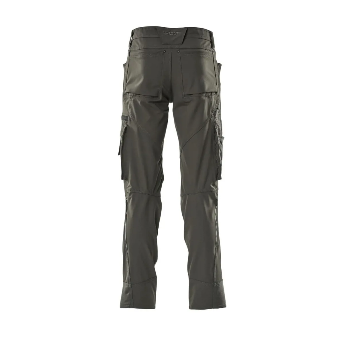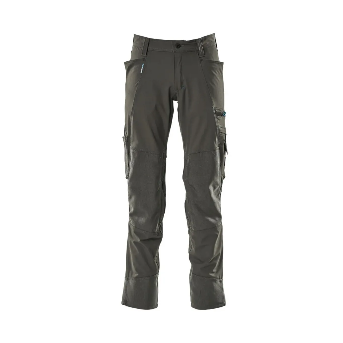 Mascot Workwear Trousers with Kneepad Pockets (in Dark Anthracite) a water-repellent finish. Ultimate stretch fabric that is lightweight and highly durable and provides unique freedom of movement and high comfort. The fabric is hardly felt against the skin as the pockets are integrated in the design.
