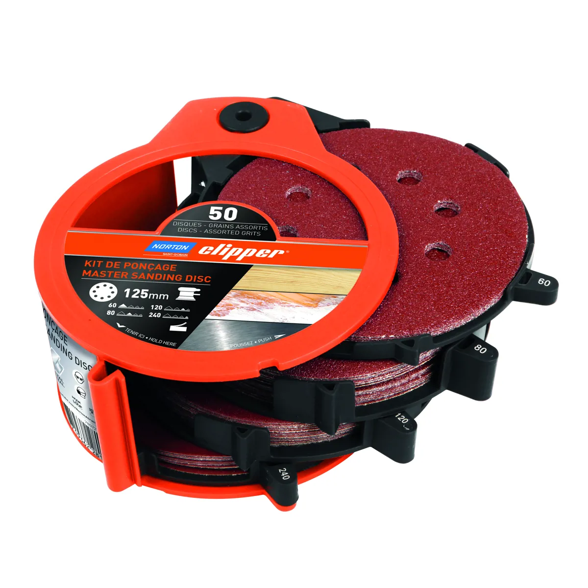 Norton Clipper 78072746195, 50 pieces of abrasive adhesive discs 125 mm in a practical dispenser in proven Norton Clipper quality. Mixture of grits for universal use: 240, 120, 80 & 60 Grit.