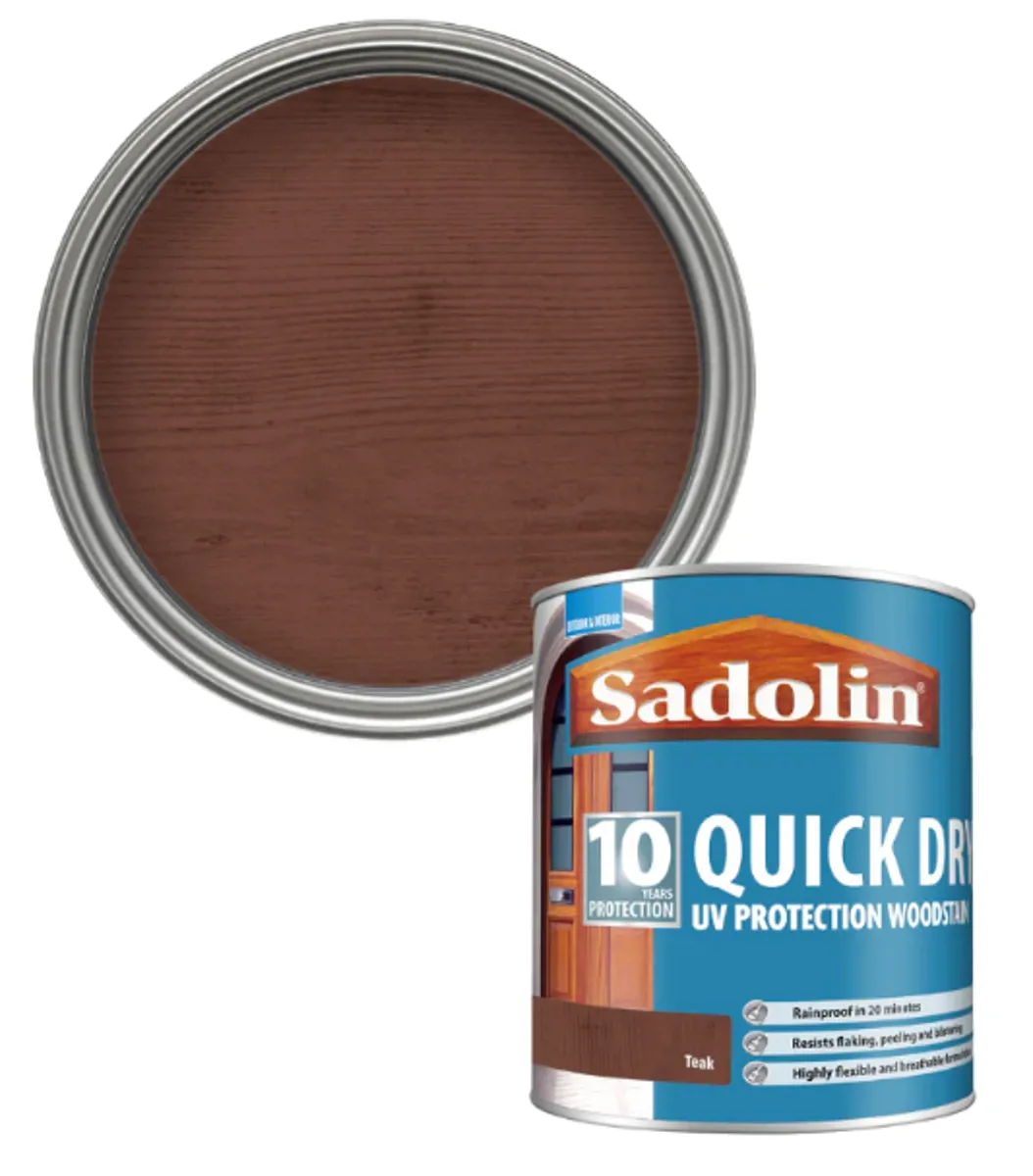 Sadolin Quick Dry UV Protection Woodstain in Teak is a tough, water-based finish designed to enrich and protect exterior wood with deep, natural colour and up to 10 years’ weather durability.