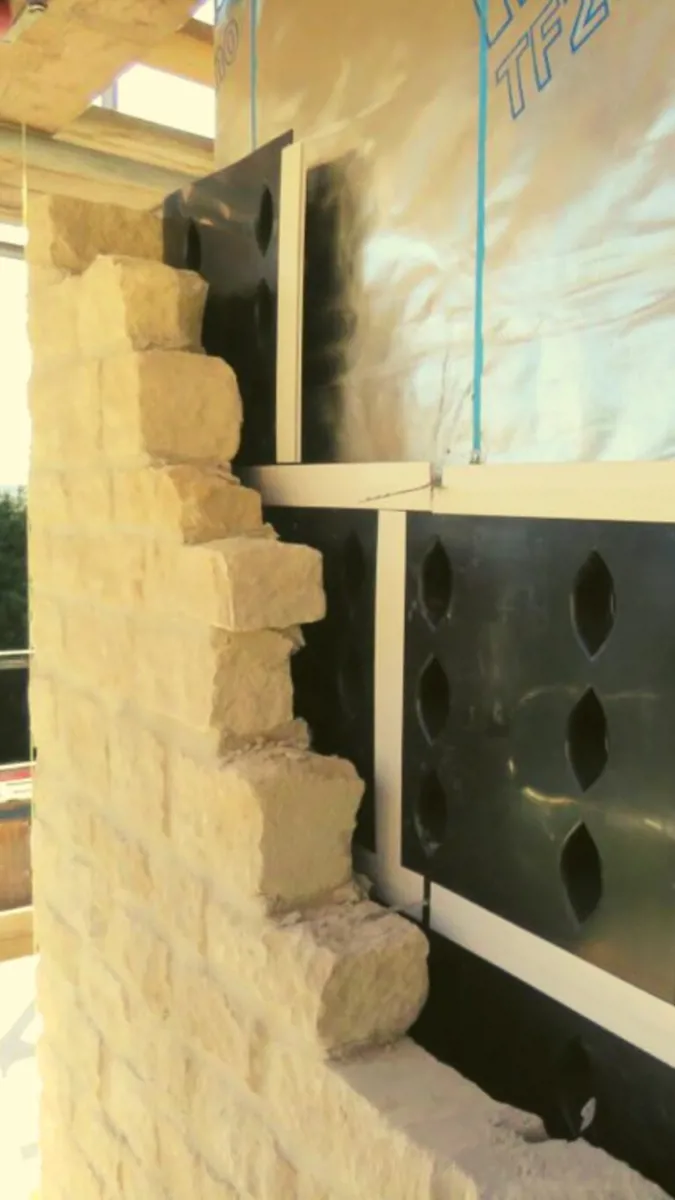The SureCav50 protects against wind-driven rain, ensures a clear, moisture and mortar-free cavity, eliminating the risk of water ingress from dirty cavities. Can be used in any construction type, with any masonry finish. SureCav50 does away with the need of a concrete backing block behind your stonework, saving internal floor space reducing your wall width by 125mm!