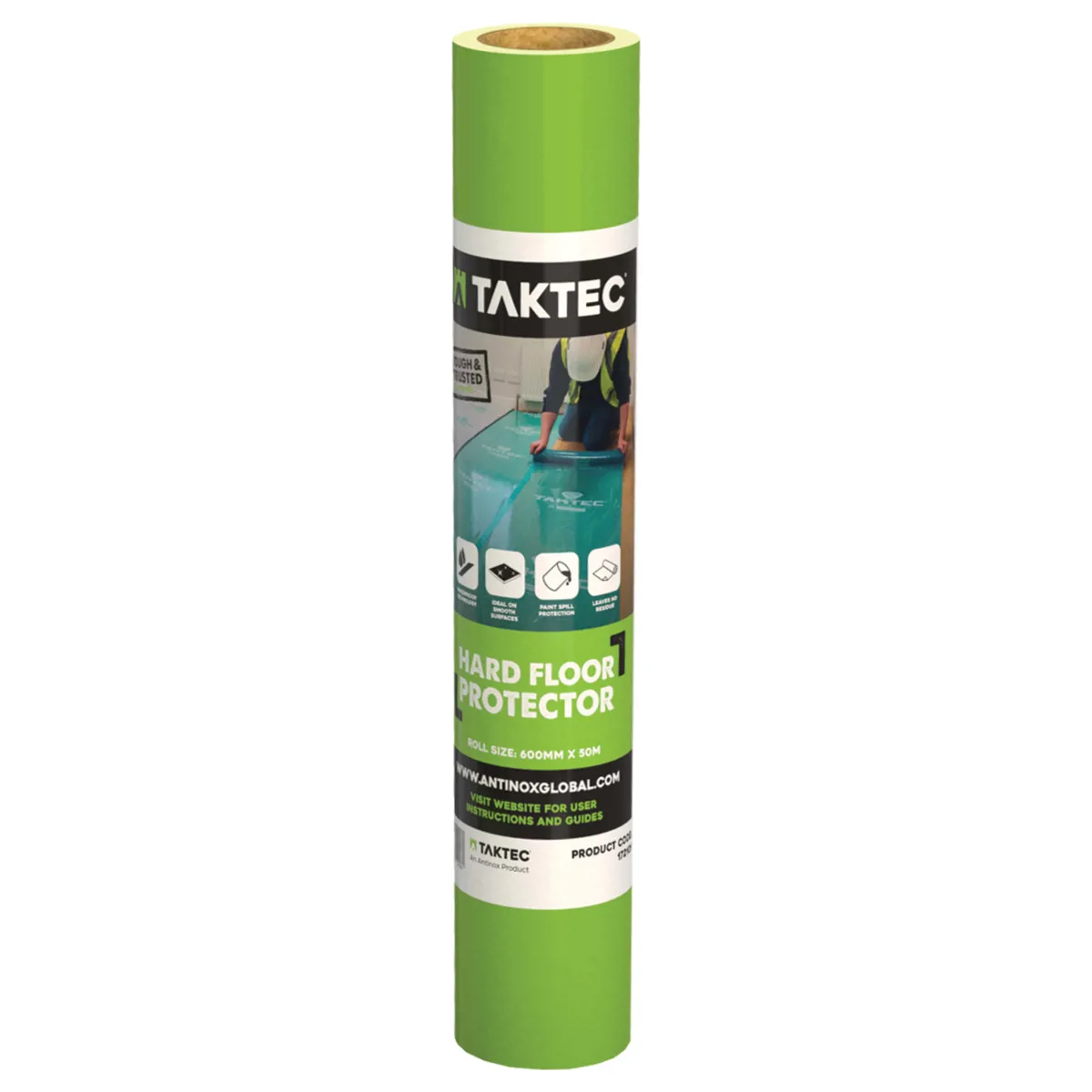 Taktec HS600 is a self adhesive protection film designed to shield hard surfaces from damage, dirt and paint splashes during building and refurbishment works. Supplied on a 50m x 600mm roll, it can be quickly applied to finished floors, worktops, doors and other smooth substrates to reduce the risk of costly repairs and cleaning. The film is tough enough to withstand site traffic yet peels away cleanly at the end of the project.